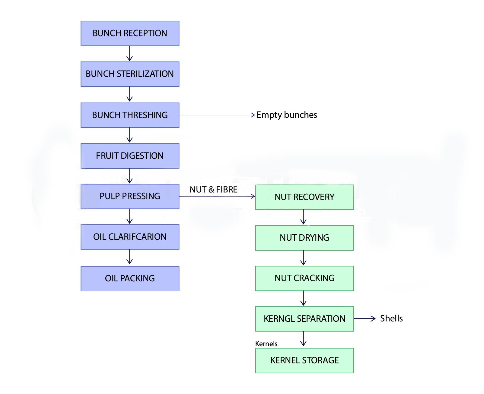 La I+D en diversas disciplinas (ingeniería química, ingeniería mecánica y bioquímica) ha dado como resultado el desarrollo de este complejo, eficaz y eficiente proceso de producción de aceite de palma. Este proceso se ha desarrollado a lo largo de los años, incorporando mayores niveles de mecanización, automatización y un mejor rendimiento y calidad del aceite.